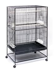 Prevue Pet Products Wrought Iron Flight Cage with Stand F040 Black Bird Cage makes the perfect home for multiple parakeets, canaries or finches. Featuring two large front doors and a bottom shelf for additional storage space, this flight cage stands on rolling casters and is easily moved from room to room. Four plastic double cups and three wood perches are included in this economical extra large cage. Our wrought iron Flight Cage with Stand is 31-inch long, 20-1/2-inch wide and 53-inch high with 1/2-inch wire spacing, available in Black Wrought Iron only.