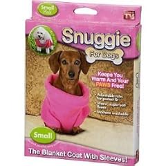 Snuggie for Dogs in Pink - As Seen on TVDog Snuggies! Finally you can keep your dog warm all year long. It's the blanket coat with sleeves. No more struggling with trying to dress your squirmy pet in tight apparel. The Snuggie for dogs has adjustable velcro tabs and an easy step into design that makes dressing effortless. Roomy sleeve design for ease of movement. Dog Snuggies are so comfortable your dog won't even know he has it on. It can easily be worn with collars and harnesses without interfering. Perfect for long walks, playing in the yard, traveling and more! Now your pet can have the same comfort and warmth as you do all year round with our Snuggie for dogs. An absolute must have for fall and winter the Snuggie blanket is also machine washable. The Snuggie blanket will provide warmth all winter long.Recommended Breed Sizing:X-Small: Teacup breedsSmall: Bichon Frise, Chihuahua, Dachshund - miniature, Maltese, Pekingese, Pinscher - miniature, Toy Poodle, Yorkshire Terrier - miniature.Medium: Beagle, Boston Terrier, Cavalier King Charles Spaniel, Cocker Spaniel, Dachshund - standard, Jack Russell Terrier, Poodle - miniature, Pug, Schnauzer - miniature, West Highland Terrier.Large: Bull Terrier, Chow Chow, Collie, Corgi, Dalmation, Doberman, English Bulldog, Labrador Retriever, Wheaten Terrier.Fit Tips:Length: Measure from the base of dog's neck to the beginning of tail.For pudgy, furry and deeper-chested dogs we recommend going one size larger...