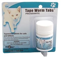 Now available without a prescription!Removes both types of tapeworms in adult cats and kittens over 6 weeks of age. 100% safe and effective when used according to label directions. Sized for easy oral administration or may be crumbled and mixed with food.Each tablet contains 23 mg Praziquantel.Each bottle contains 3 tapeworm tablets. Tape Worm Tabs Praziquantel Tapeworm tablets for cats and Kittens Each Tablet Contains 23 mg Praziquantel. Description: Tape Worm Tabs (praziquantel) Tapeworm Tabs for Cats and Kittens are sized for easy oral administration to either adult cats or kittens. The tablets may be given directly in the mouth or crumbled and mixed with the food. If given with food, mix the tablet(s) with a small amount of the animal's usual ration. If all the tablet(s) is/are not eaten, Tape Worm Tabs may not remove all tapeworms.Uses: Tape Worm Tabs (praziquantel) Tapeworm Tablets will remove the common tapeworms, Dipylidum caninum and Taenia taeniaeformis, from cats and kittens.Directions for Use Tapeworm infection is one of the most common internal parasite problems actually observed by cat owners. The presence of tapeworms is indicated by the presence of white or yellow-white and similar in size and shape to flattened grains of rice. The segments are most frequently observed lying on the animal's droppings or, less often, anus of the animal, or occasionally on the animal's bedding. Cats become infected with tapeworms after eating fleas or small rodents (rats, mice) which are infected with tapeworm larvae. Consult your veterinarian for assistance in the diagnosis, treatment, and control of parasitism.Dosage and Administration: Administer to cats and kittens* only as follows: 4 pounds and under ....... 1/2 tablet 5-11 punds .................... 1 tablet Over 11 pounds ............ 1 1/2 tablets * Not intended for use in kittens less than 6 weeks old.Fasting is Neither Necessary Nor RecommendedRetreatment: Steps should be taken to control fleas and