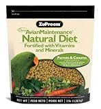 ZuPreem Natural Premium Small Parrot Food The perfect alternative for pet owners that are looking for a more natural food for their birds. There are no added colors or perservatives and it offers complete nutrition for various species of hookbills and softbills. Features: Pellets are sized for Conures, Amazons, Greys, Pionus, Caiques, Senegals and other medium to large parrots Fixed formulations are made with high-quality ingredients from U.S. sources Fortified with 21 vitamins and minerals birds need every day for good health Every pellet contains carrots, celery, beets, watercress and spinach ground from fresh vegetables for a great flavor Pellets come in a naturally tan, oval shape Extruded pellets enhance carbohydrate bioavailability; more digestible than cold-pressed pellets or seed mixtures Item Specifications: Ingredients: Ground corn, Soybean meal, Ground wheat, Vegetable oil, Wheat germ meal, Sucrose, Dicalcium phosphate, Calcium carbonate, Ground vegetables (carrots, celery, beets, watercress and spinach), Iodized salt, DL-Methionine, Choline chloride, L-Lysine, L-ascorbyl-2-polyphosphate, Natural mixed tocopherols, Rosemary extract, Citric acid, Canthaxanthin, Manganous oxide, Zinc oxide, Copper sulfate, Calcium iodate, Sodium selenite, Vitamin A supplement, Vitamin D3 supplement, Vitamin E supplement, Vitamin K supplement, Niacin, Calcium pantothenate, Pyridoxine hydrochloride, Thiamine, Riboflavin, Folic acid, Biotin, Vitamin B12 supplement Guaranteed Analysis: Crude Protein Not less than 14.0% Crude Fat Not less than 4.0% Crude Fiber Not greater than 3.5% Moisture Not greater than 10.0%